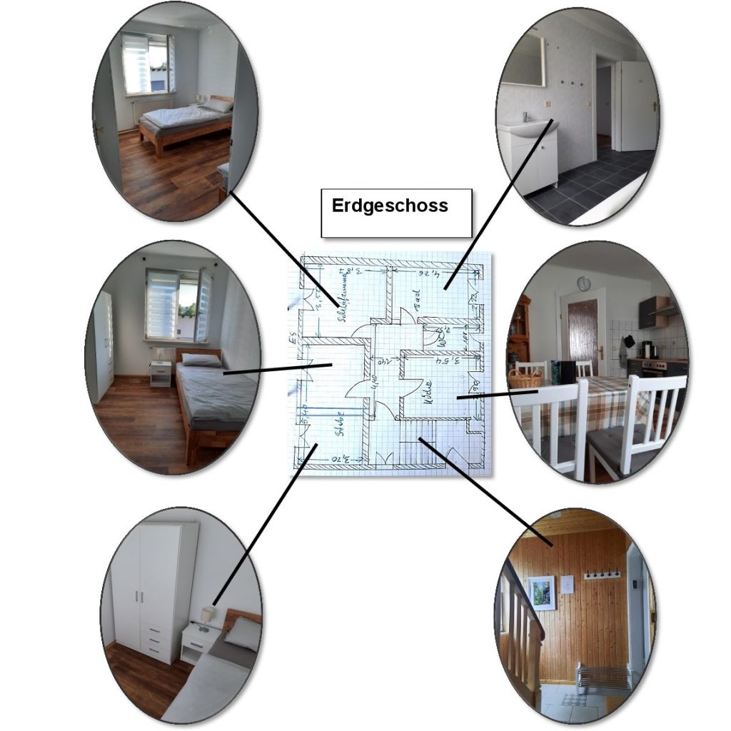 Wohnung Nr1: Erdgeschoss (66 qm) bietet Platz für 4 Personen in zwei Einzelzimmern und einem Doppelzimmer.