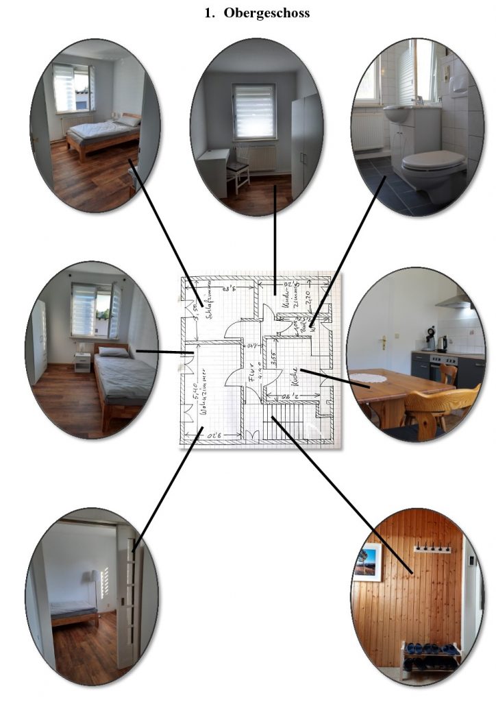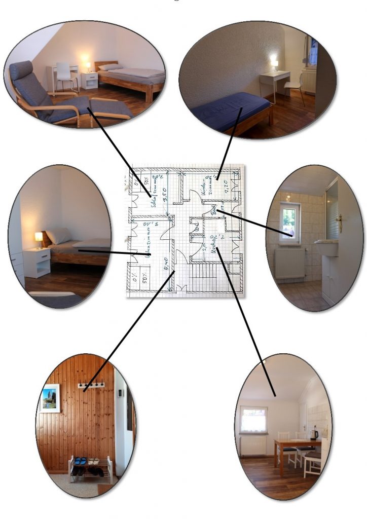 Wohnung Nr. 2: erste Etage (66 qm) bietet 5 Personen Platz in drei Einzelzimmern und einem Doppelzimmer.